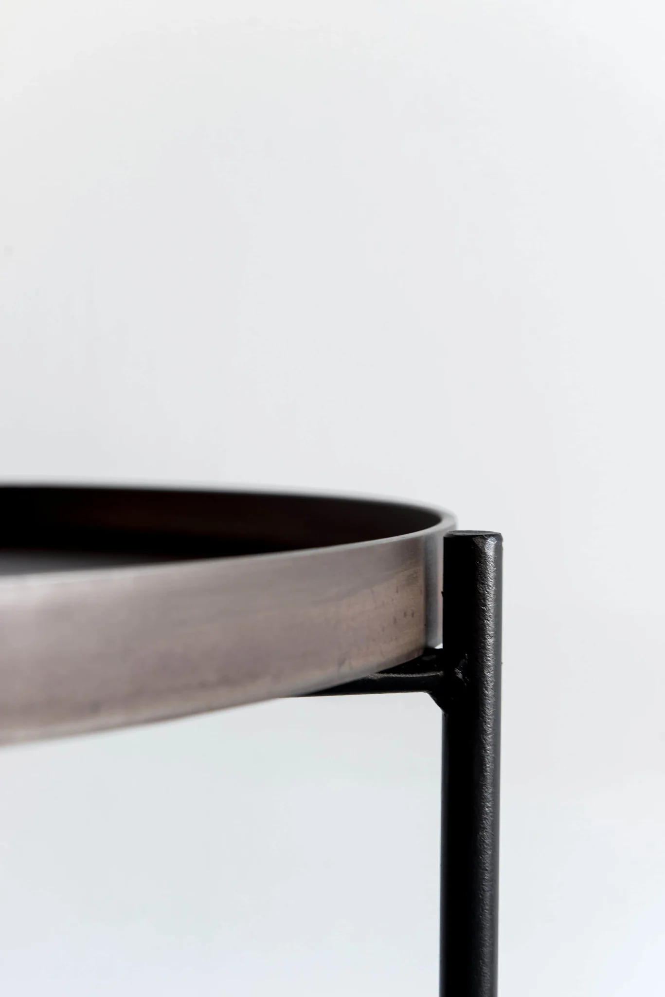 The Bronson Side Table is a balanced blend of industrial and contemporary design elements, creating a versatile accent piece for any space. The top is patinated to achieve an antique bronze finish, adding both warmth and depth to the piece, while the thin matte black frame creates a sleek, modern form. Three vertical uprights create the minimalist profile that has become synonymous with Croft House Design.