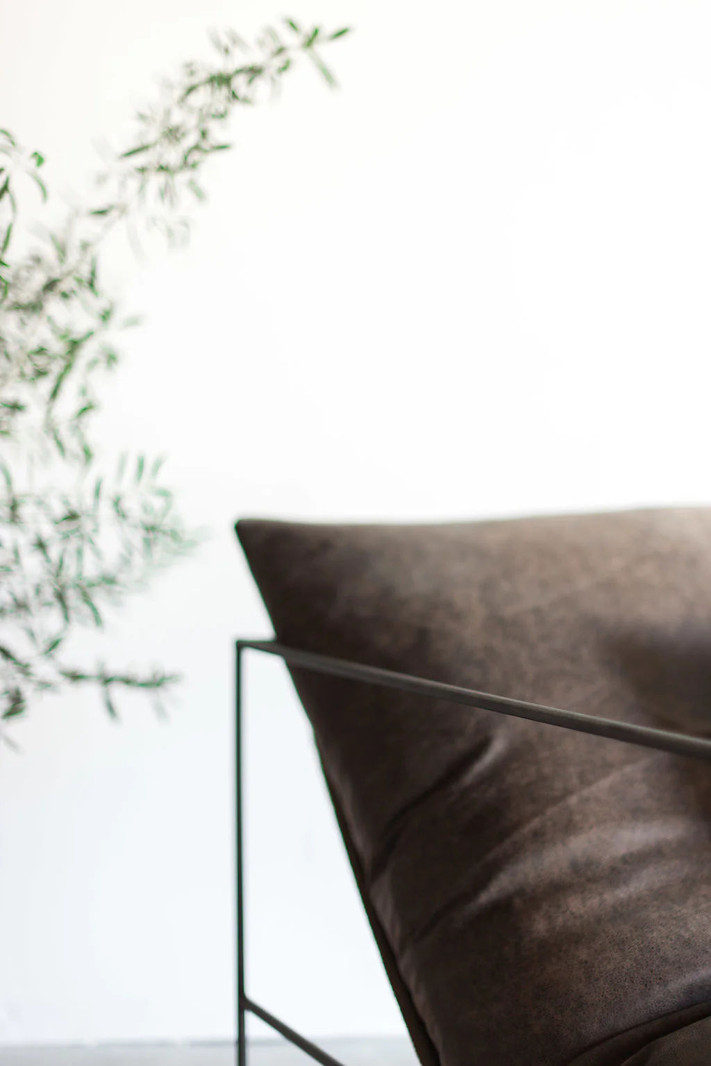 The Leather Sierra Chair by Croft House is handmade locally in Los Angeles, California. Croft House’s flagship upholstered piece is regarded for not only its distinct design, but its exceptional comfort as well. An open, thin steel frame allows the design to incorporate negative space and natural light as if they are tangible materials used to construct the chair. The clean lines of the frame are complimented with four straps of slung jute webbing, softening the piece with a more relaxed feel. The slung jute webbing cradles a single, large all polyfiber cushion, creating a cozy and natural seat. A rustic leather cover adds a refined element to the design.