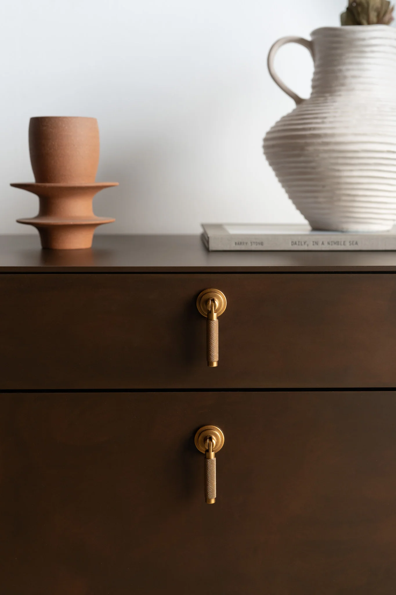 The Lola Nightstand by Croft House is handmade locally in Los Angeles, California. The unique design of the piece draws its original aesthetic through the combination of Croft House’s classic metal casing and rich patina finish. The Lola Nightstand's sculptural base creates a captivating interplay of light and shadow, adding another dimension to the piece. The nightstand has two drawers complimented with vintage brass drop pulls. Available for COH customization by request.
