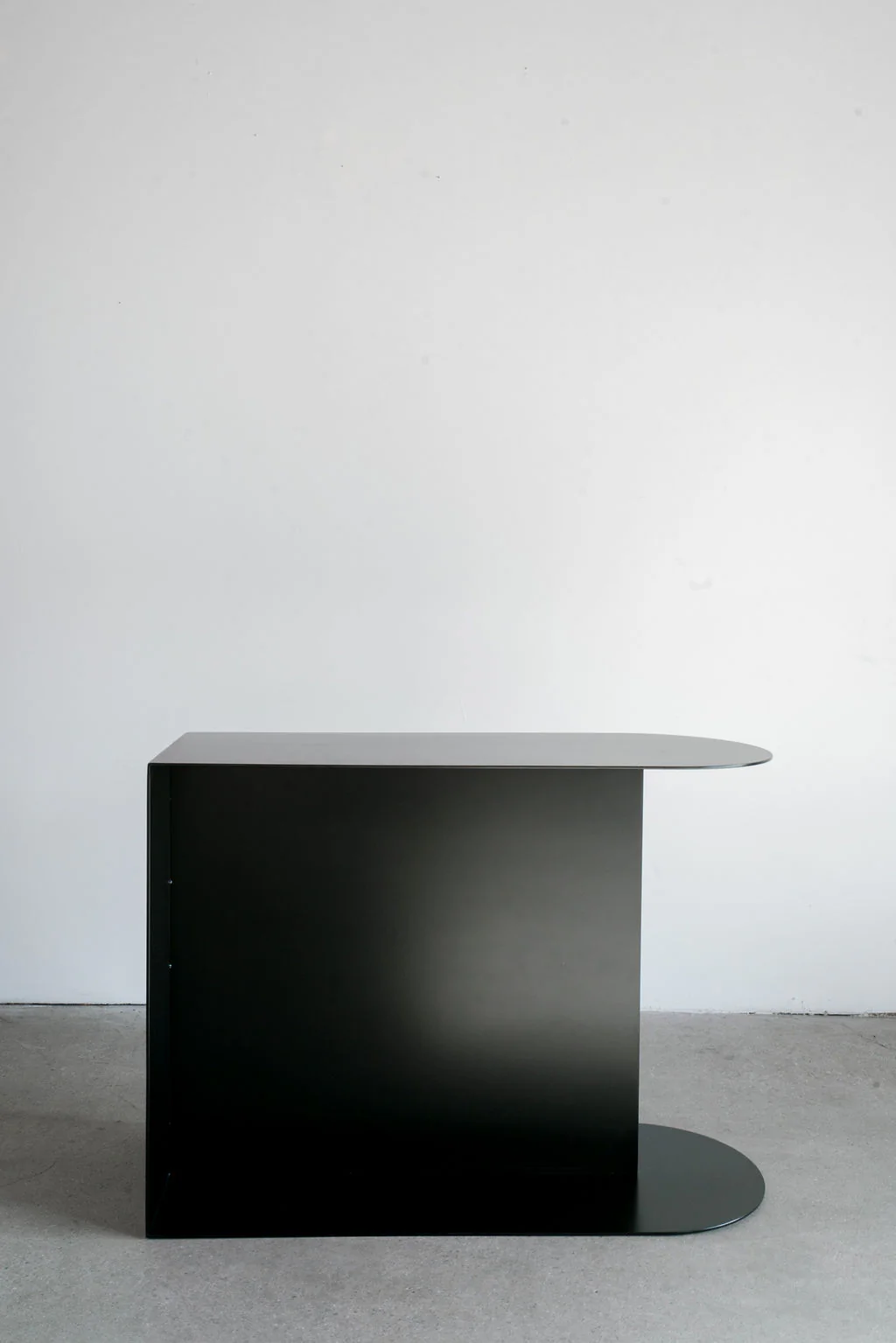 The Norah Accent Table offers a unique blend of form and functionality, featuring a steel body with a half-pill shaped top and base that softens the clean-lined profile of the piece. Two top options - steel, or leather - offer flexibility to suit any space and the tinted clear powder coat finish highlights the natural markings of the steel body. With its sculptural appeal and artisanal craftsmanship, this versatile accent table works beautifully as a side table, standalone piece, or paired together to create tiered and asymmetric consoles.