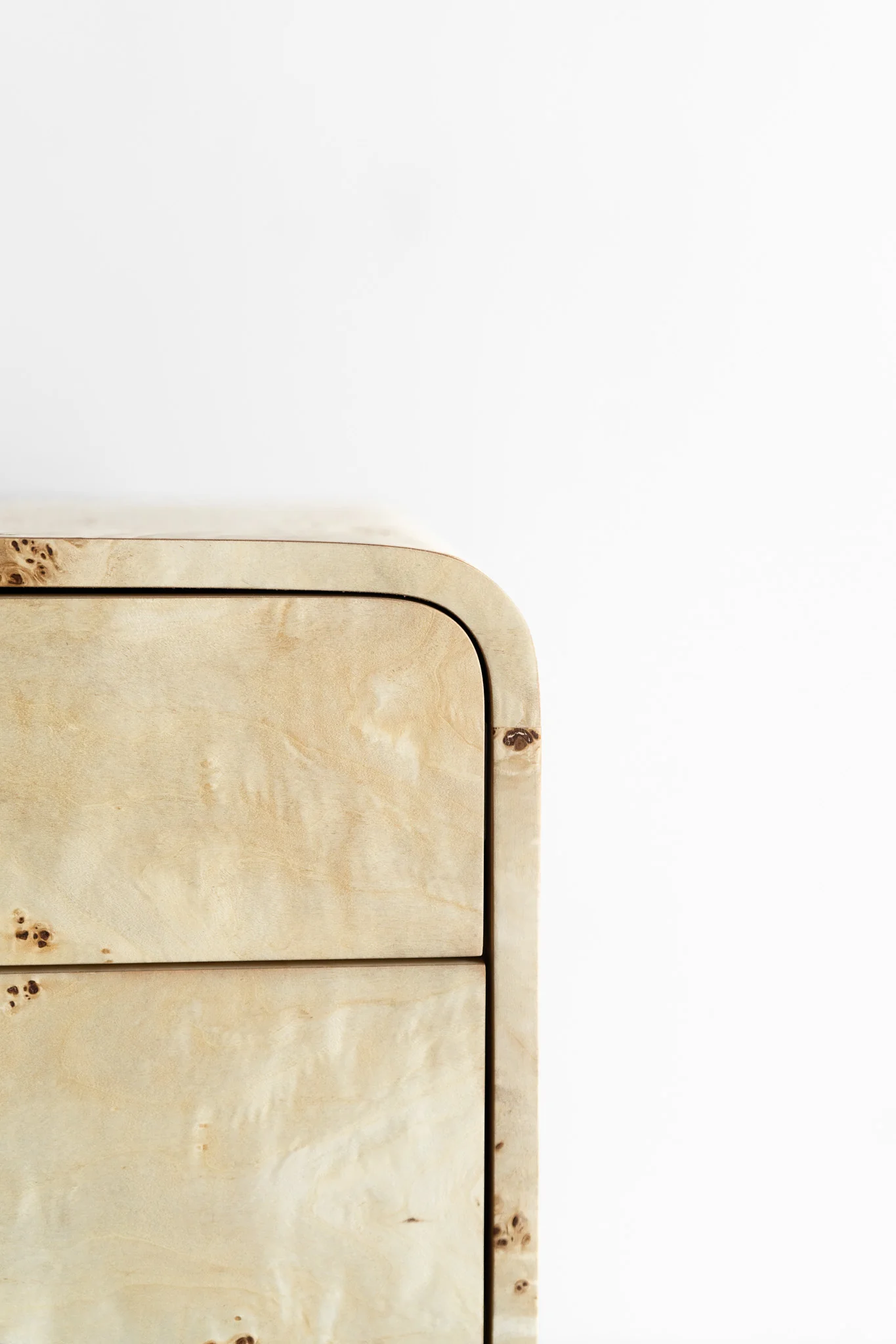 Handcrafted in Los Angeles, California by a small and dedicated team, this nightstand is made to order to ensure that every piece we build meets the unique needs and preferences of the customer. Due to the unique growth patterns of burl wood, each piece exhibits distinctive variations in grain pattern, color intensity, and natural features. Burls may contain swirls, knots, small voids, and irregular grain formations - these characteristics are inherent to the material and contribute to its organic beauty. The exact appearance, including figure patterns and color variations, will differ from piece to piece and cannot be customized. Samples can provide a general reference for color and texture but cannot represent the full range of natural variation inherent in burl wood products.