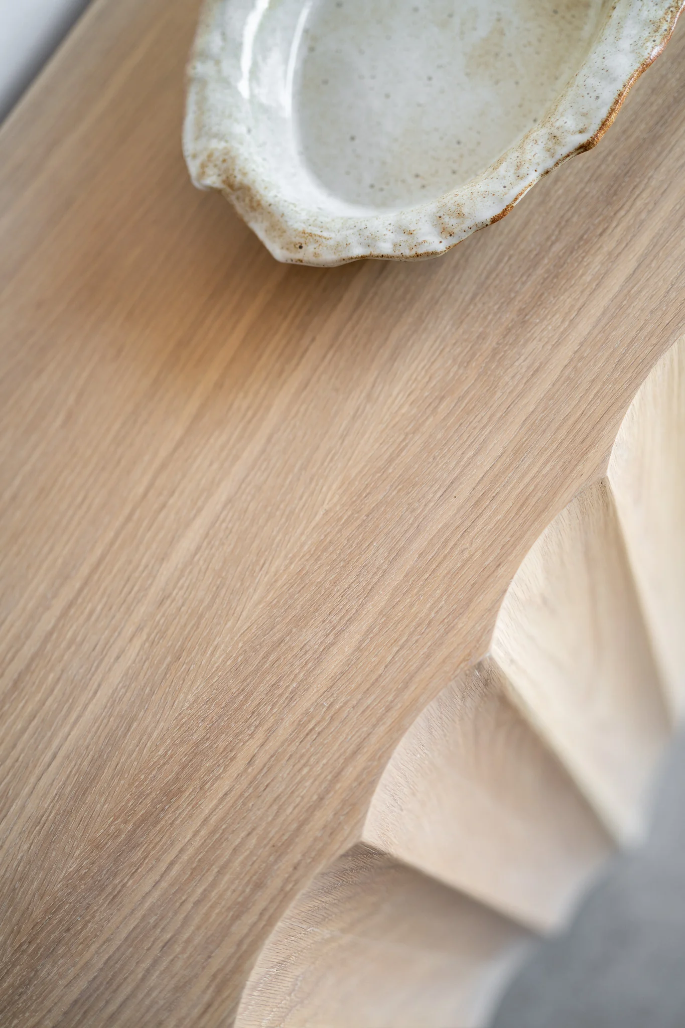 The fluted wood construction creates a meditative flow of vertical lines, with repetitive forms that echo the ocean's eternal pulse. These sculptural details cast subtle shadows that shift throughout the day, creating visual rhythm and tactile interest from every angle. Crafted from premium oak, the warm wood tones and gentle curves bring the serene essence of coastal living indoors while highlighting the natural grain.